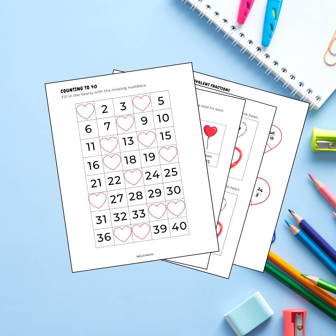 Spread the love for learning with our Valentine's Day-themed math worksheets!